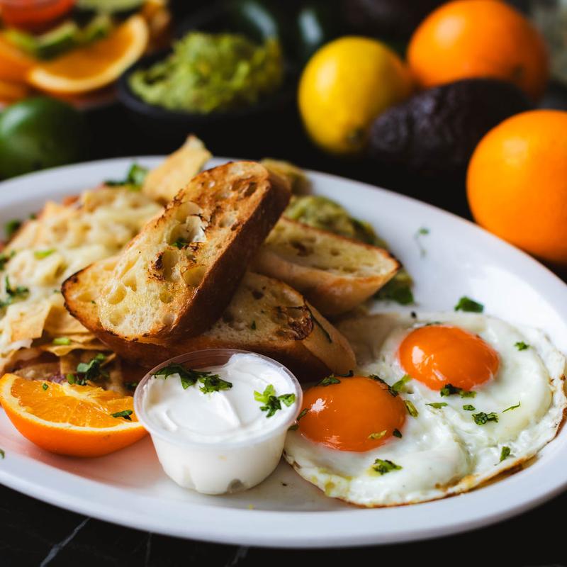 2 poached eggs on top of gluten-free tortilla chips, jalapeños, black olives and cheese topped with Hollandaise sauce + your choice of side | 3 Eggs Nacho Benedict $25.3 • Add Chorizo (Pork or Vegan) +$4.3