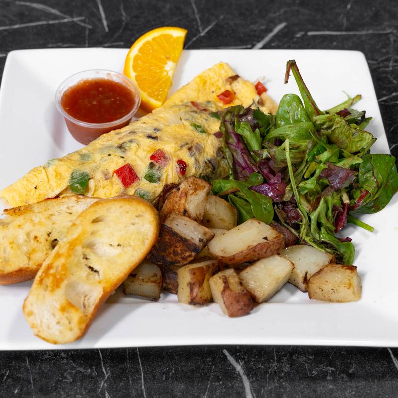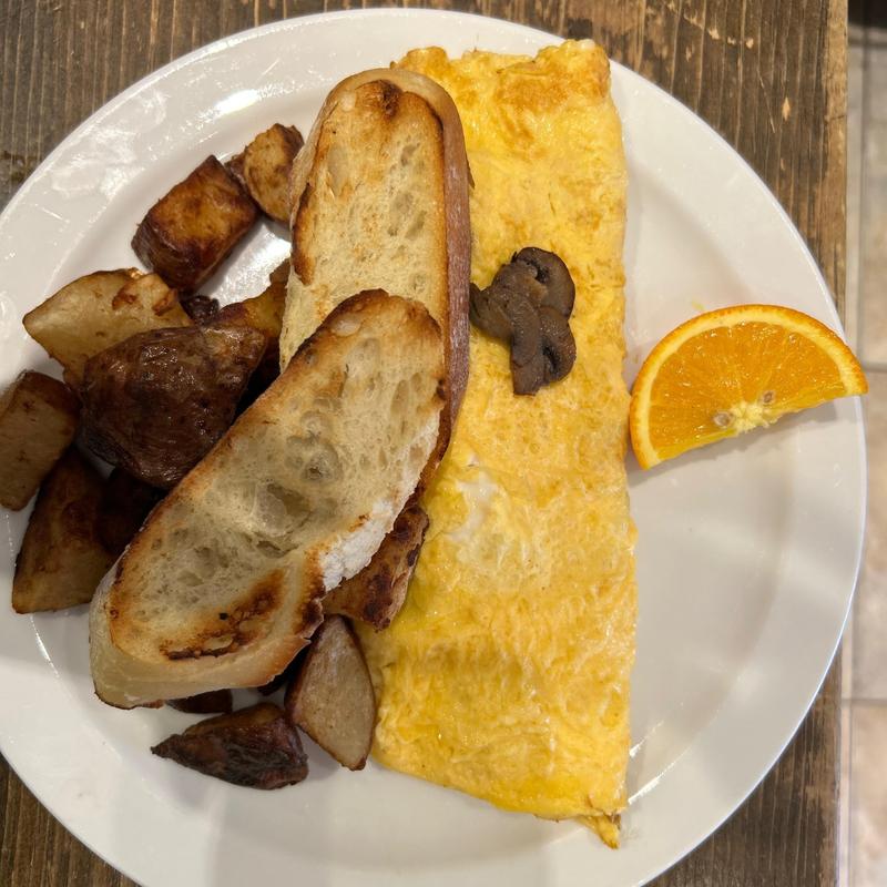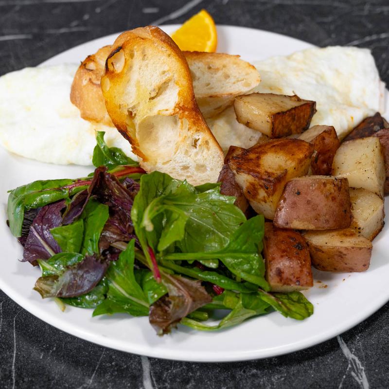 2 Eggs any style with a 6 oz. AAA steak and toasted baguette + your choice of side • Add 1 Egg Any Style +$2.30