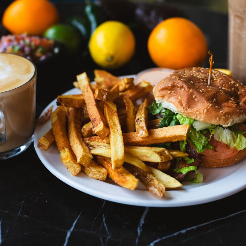 A homemade patty with guacamole, bacon, cheese, tomatoes and greens. Comes with hand cut fries and chipotle mayo • Add: 1 Egg Any Style +$2.3 | Extra Patty +$3.50 • Sub Gluten Free +$3.90