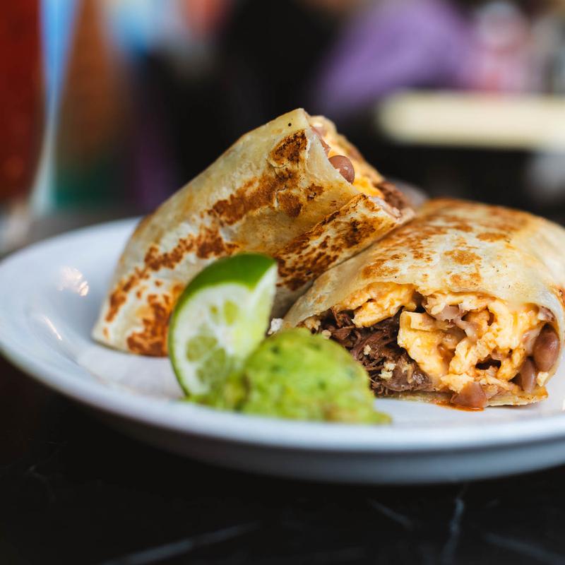 Scrambled eggs, beans, chipotle salsa, cheese, baked in a flour tortilla with a side of guacamole + your choice of side • Add: Side Red, Green Salsa or Sour Cream +$1.9 | Chorizo (Pork) or Vegan Chorizo or Chicken -+$4.30 | Birria or Steak+ $6.3 | Tortilla (Gluten Free) +$3.20